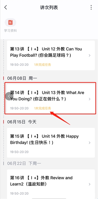 3、在“学习”栏,点击已结束课程,选择“任务”。