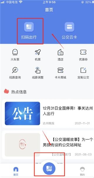 5、最后乘坐公交车时直接打开“达州一卡通app”选择“扫码出行”即可。