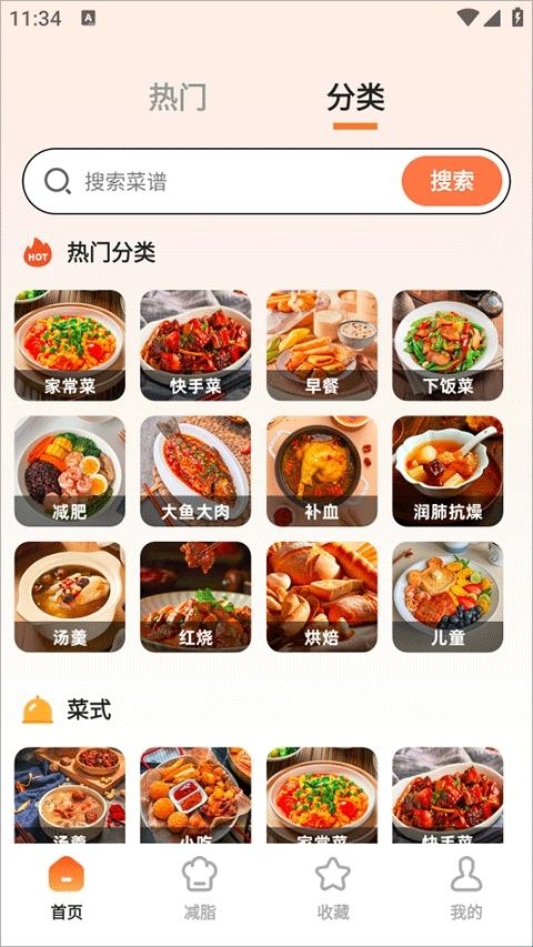 4、分类里面还有各种不同的菜式、食材、甜品种类等等可以选择