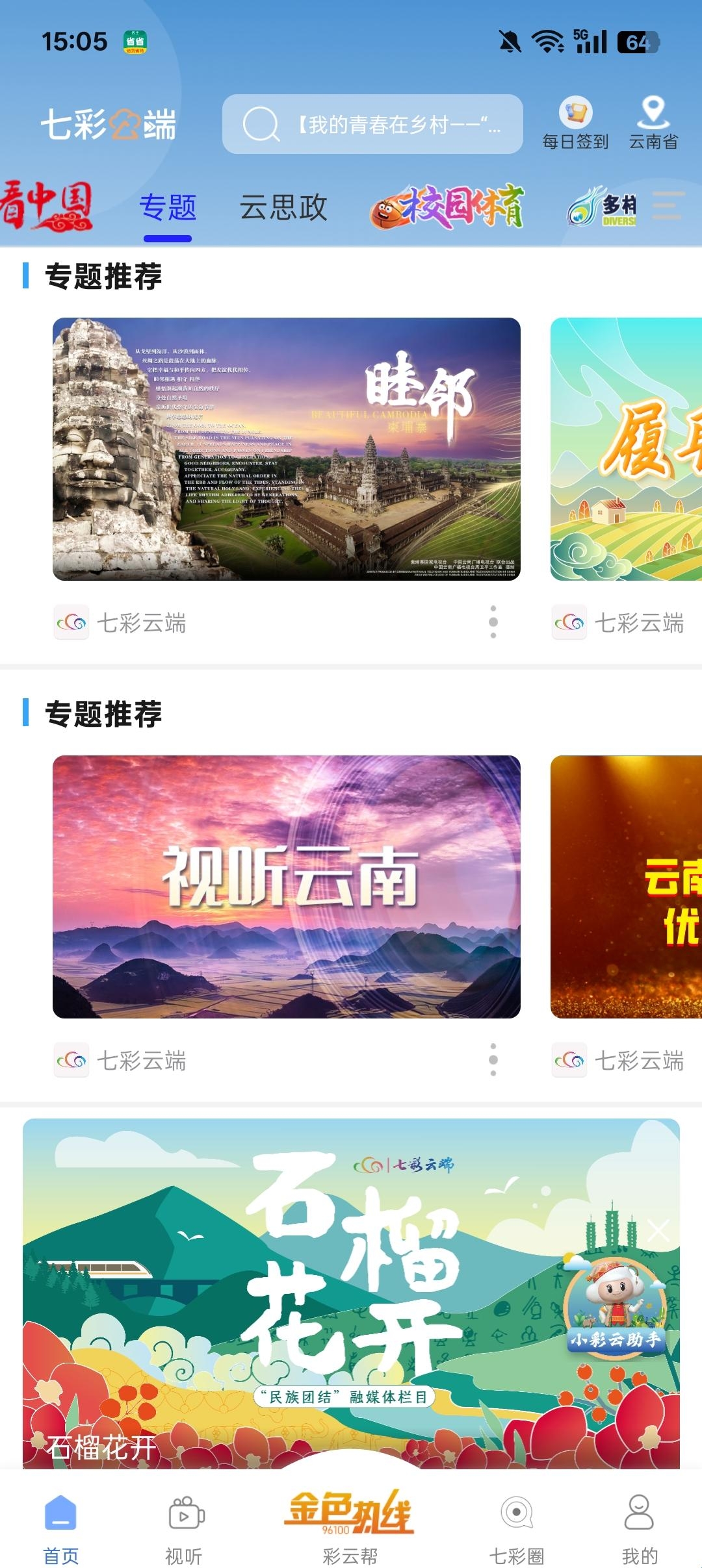 七彩云端APP是专为云南地区打造的一款线上新闻资讯阅读软件。提供的相关资讯热点内容是非常丰富全面的,能够满足大家的各种阅读需求。海量资讯、视频内容大家可以任意观看阅读,用户可以根据自己的喜好来定制个性阅读,有更新就会及时推送,而且都是24小时实时更新的,感兴趣的小伙伴不妨前来本站下载体验的哦!