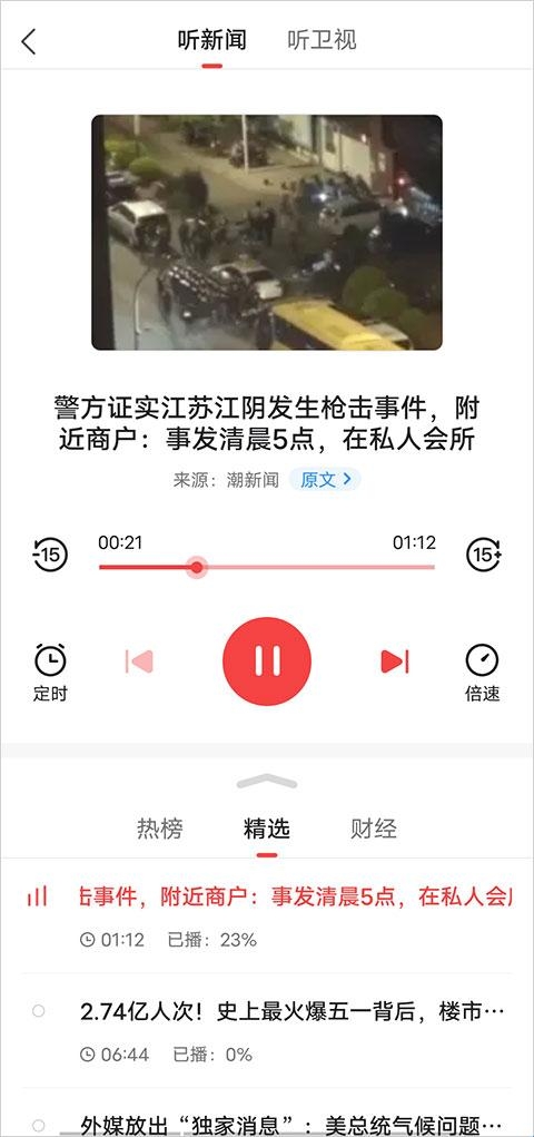 2、点击之后就可以听新闻了,你还可以在下方选择不同的热点新闻进行收听。