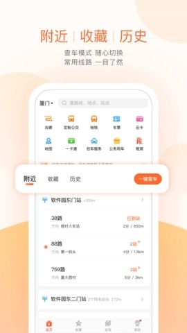2、附近线路:精确查找附近线路,自由切换乘车站点,轻松选择乘车站点。