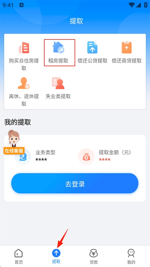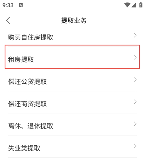 3、也可以在提取页中找到并点击“租房提取”取功能;