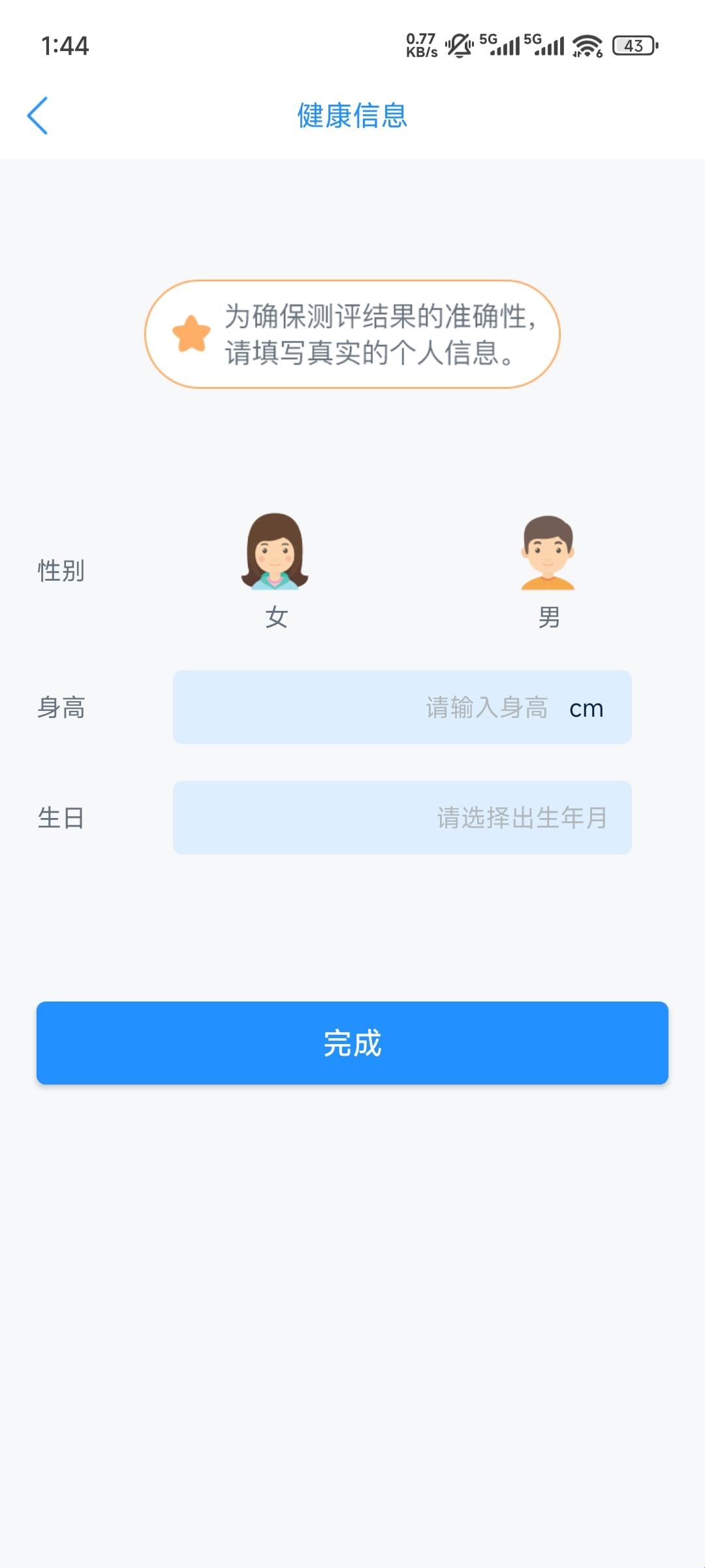 4、为确保测评结果的准确性请填写真实的个人信息