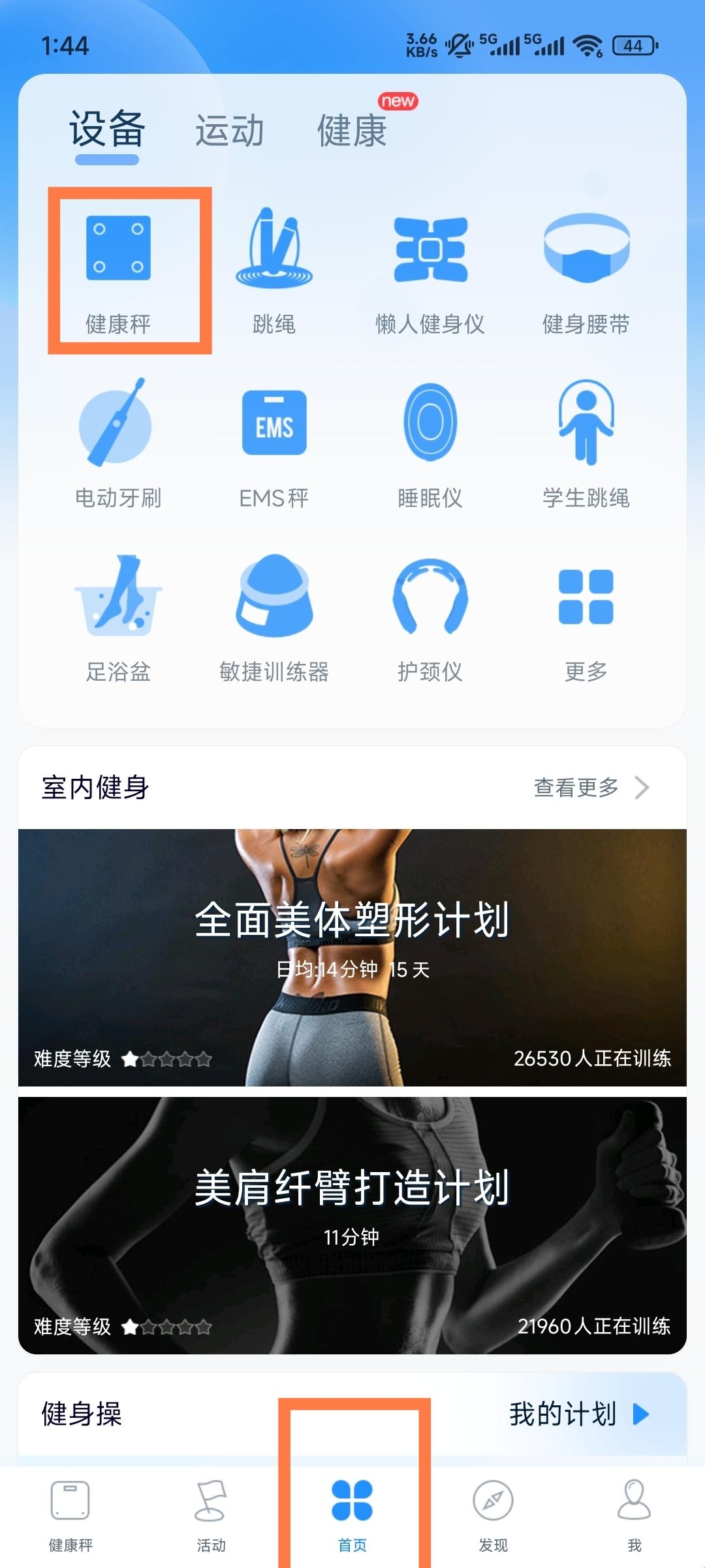 2、在首页点击健康秤