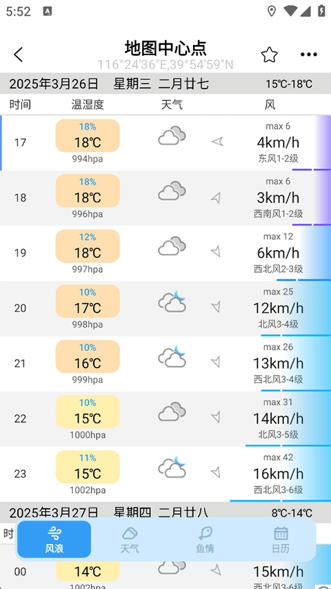 2、在天气界面你可以随便点击一个钓点就可以看到该地的潮汐天气;