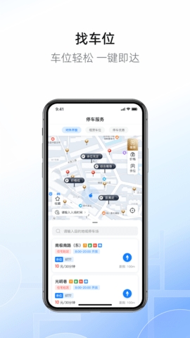 1、在这个平台里面也可以搜索你周围的停车位,还可以帮助用户们智能导航。