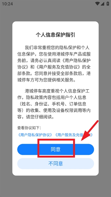 在个人信息保护指引提示界面点击同意