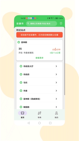 1、附近站点:自动定位当前位置。呈现你附近站点和线路信息。