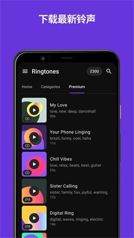 4、为你的手机设置铃声,百万高品质热门铃声,经典铃声,热门歌曲、摇滚乐,经典语录,精选优质铃声,个性化你的手机铃声;