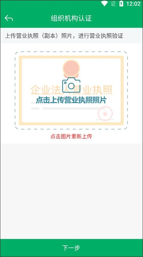 6、然后在上传营业执照(副本)照片,进行营业执照验证。