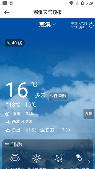 4、天气查询功能,用户可一键查询当地的天气状况。