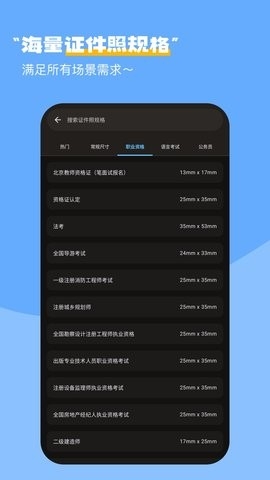 4、超多尺寸任你挑选,选择需要制作的证件照后系统会自动调整对应尺寸;