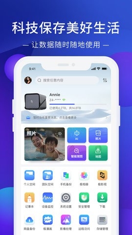 打破你的手机内存限制,让你拥有10000G内存空间的“手机”,存储千万张照片,数万部高清视频,再也不会有手机内存不够的焦虑,轻松将美好全部装下,随时随地随心访问。强大的人脸识别技术,把照片按照时间、场景、地点、人物分类管理,让用户多角度回忆生活。