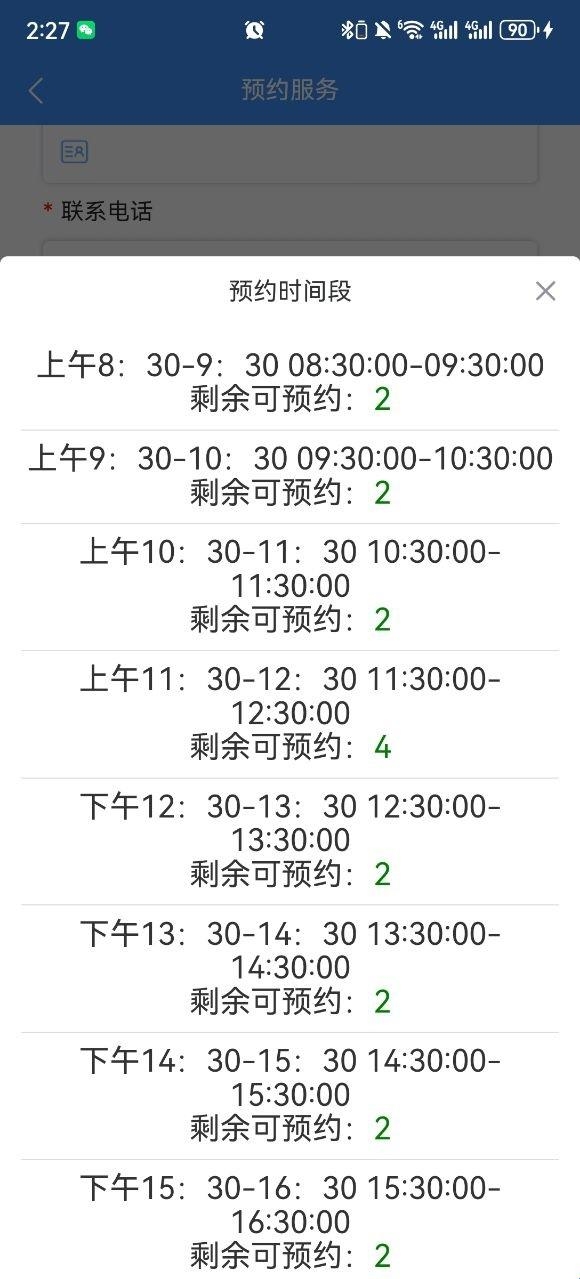4、预约时间段,上面会显示预约名额。