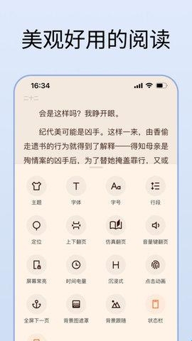 支持主题下载与自定义设置,包括多种字体、字号、背景颜色等,打造专属阅读界面