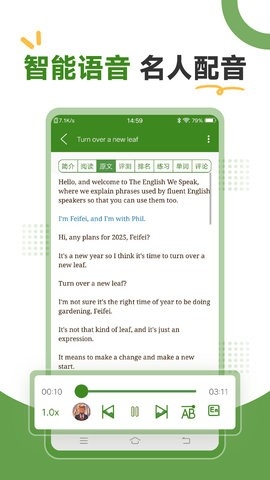 3、听力训练:提供多种听力材料,包括新闻、对话、短文等,帮助用户提高英语听力能力。