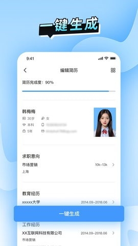 1.快捷智能的简历制作,你可以迅速的在这里制作和完成个性化简历