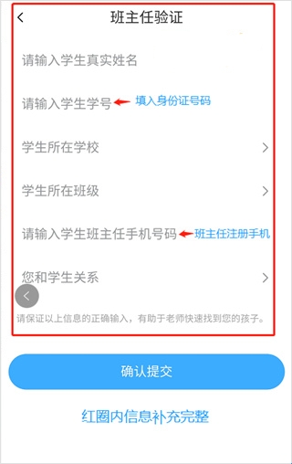 3、登录后,点击首页的“我知道班主任信息”进行身份确认。