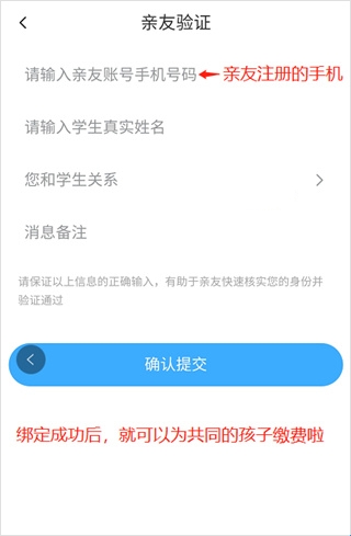 5、按照提示填写亲友的相关信息,提交绑定申请。