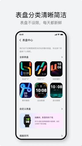 海量的表盘可供选择,跟随自己的心情选择喜欢的表盘同步至手表,并可以将喜欢的图片设置为自己的表盘。