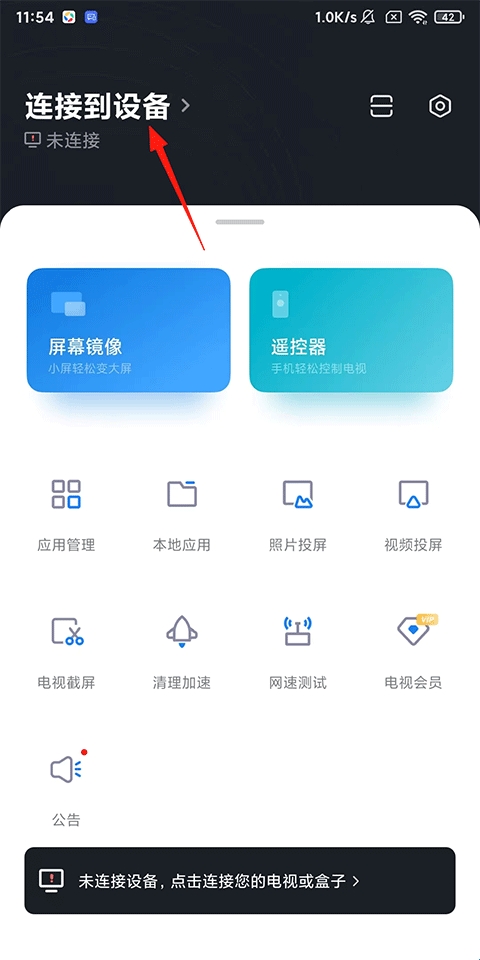 1、打开小米电视助手APP,在首页点击【连接到设备】;