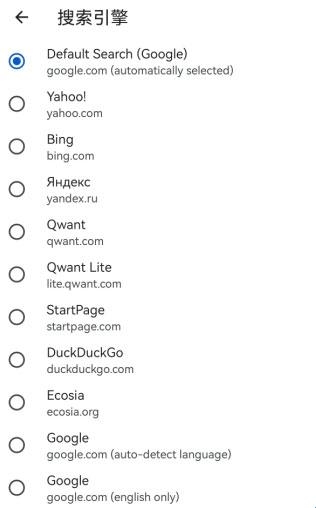 第五步,在列表里选择你要使用的默认搜索引擎就可以了