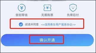 4、进入信用乘车页面,再打勾‘阅读并同意’,再点击确认开通
