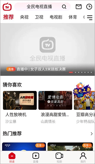 1、电视直播,高清同步,弹幕互动,边看边聊