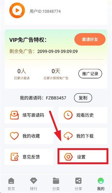 2、在我的界面点击设置