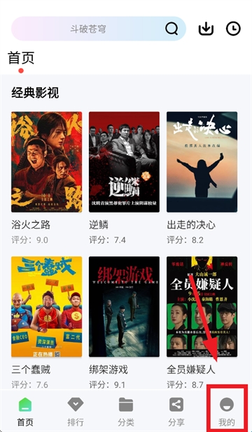 1、打开风筝影评,进入首页后点击我的