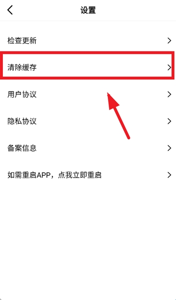 3、进入设置界面后选择清除缓存