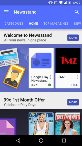 4、点击Newsstand,这里有很多的报刊可以选择,超多的报刊杂志内容。