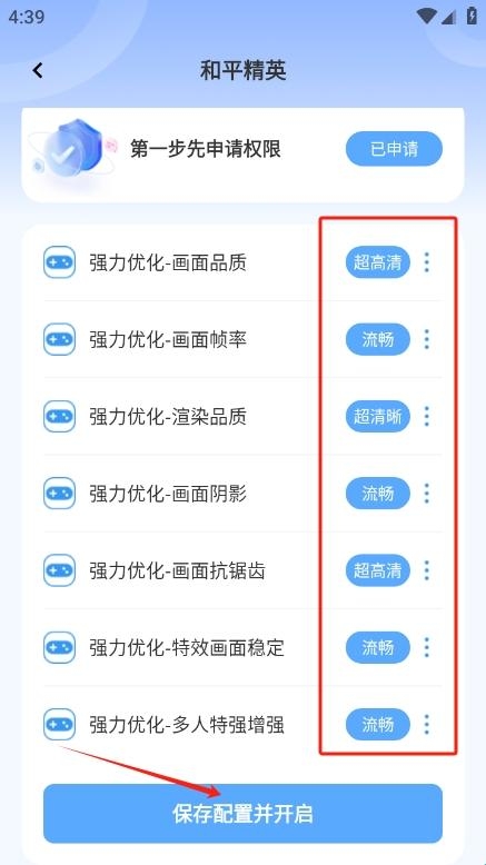 6、修改参数,保存配置并开启,然后启动游戏即可。
