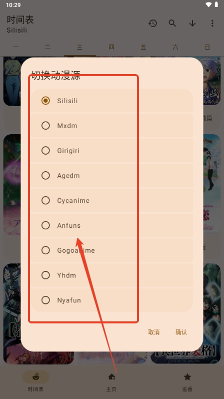 2、点击切换动漫源;