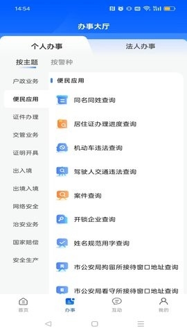 天津公安民生服务平台是专为天津地区打造的一款民生服务软件,提供的各种功能都是可以很好地满足大家的各种使用需求。让大家足不出户就可以办理各种事务,还可以随时查询办理进度,所有的事项都有对应的分类,方便大家快速找到并进行使用的,为本地用户提供极大地便利。
