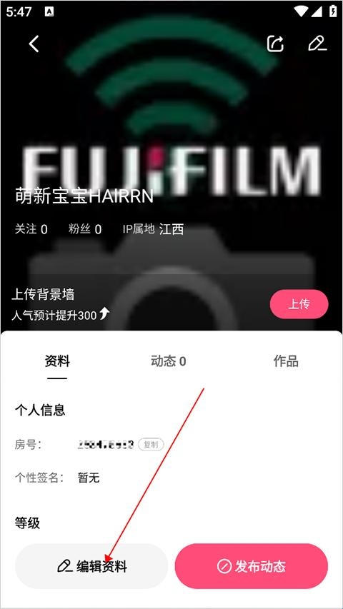 2、进入到个人资料页面,再点击“编辑资料”选项;
