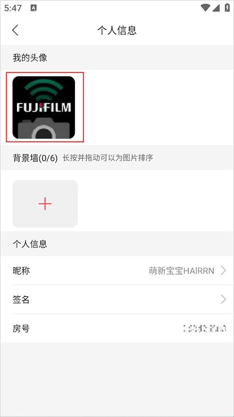 3、进入到个人信息页面,点击我的头像图标;