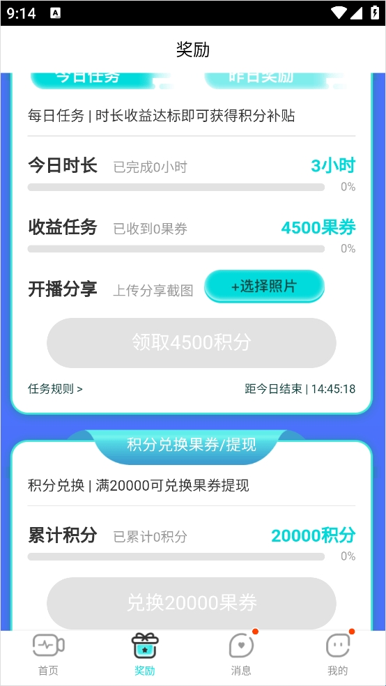3、同时直播还可以领取补贴,积分可以用来兑换果券