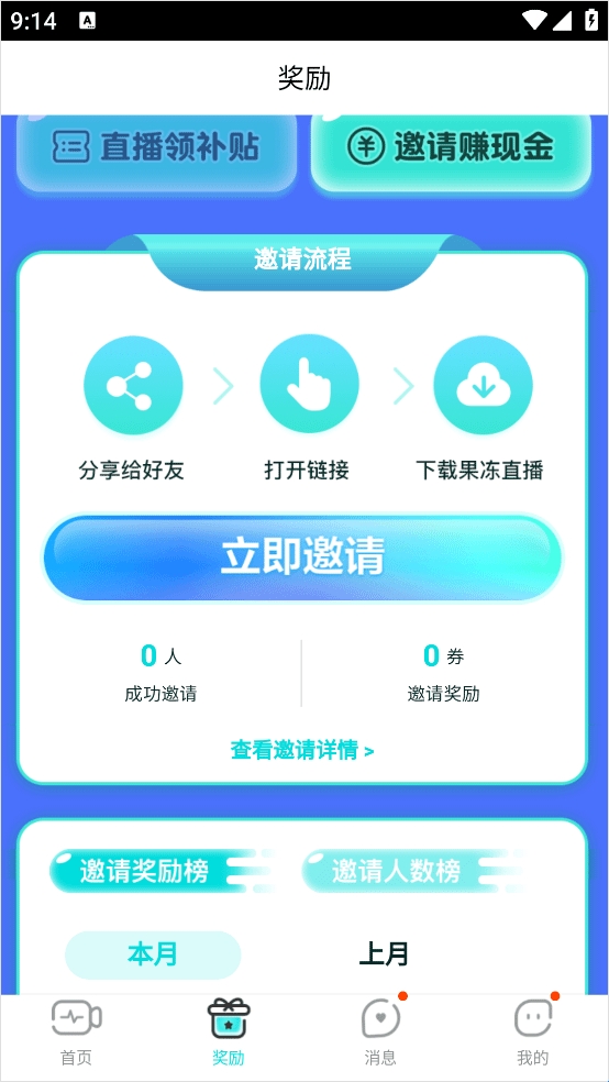 2、或者在奖励界面内通过邀请好友下载app来赚取现金