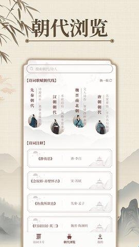诗词歌赋朝代线:按照历史朝代顺序整理诗词歌赋,帮助用户清晰了解诗词发展的脉络,感受不同朝代的文学特色。