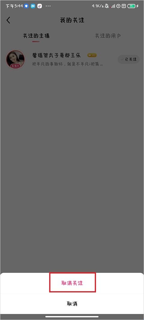 3、进入到我的关注列表页面,找到需要取消关注的主播,点击她右侧的“已关注”按钮;