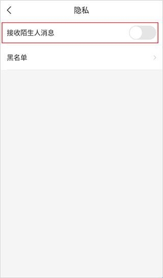 4、隐私设置界面点击“接收陌生人消息”后面的圆点。