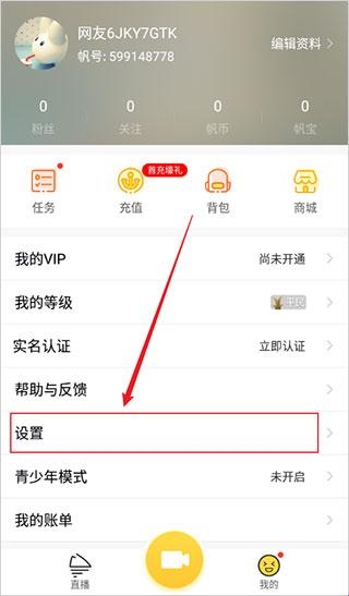 2、个人中心界面点击“设置”打开设置界面。