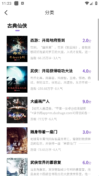 3、选择喜欢的类型后就能够看到各种同类型的小说了