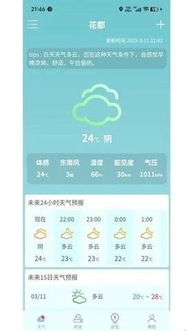 1、精准呈现所在城市的实时天气状况,涵盖温度、湿度、风速等关键气象要素,全方位了解天气详情。