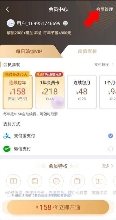 3、来到VIP会员中心后,点击右上角的会员管理选项