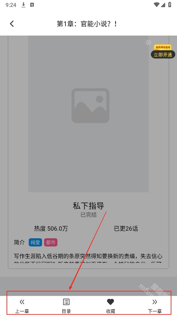 阅读漫画作品:点击进入漫画作品页面,您可以阅读漫画的每一话,通过滑动屏幕或点击翻页按钮来翻看漫画的内容。