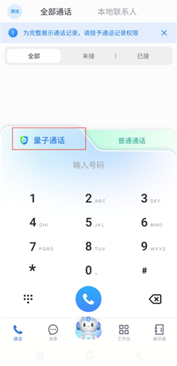 3、选择“量子通话”,输入号码,点击拨号即可