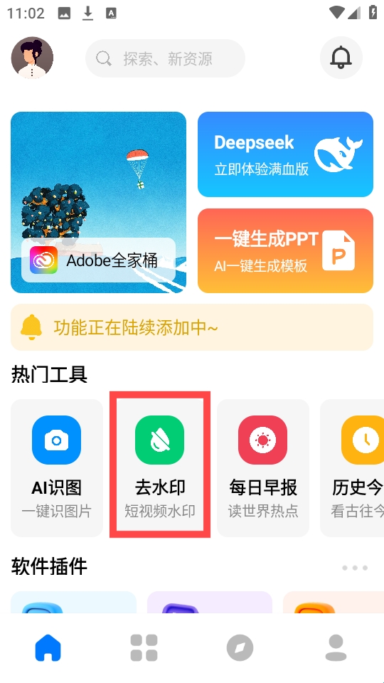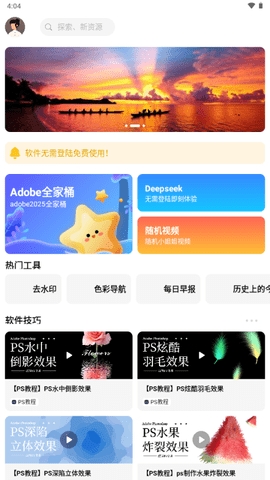 软设盒子是一款结合设计教程类+工具类的多元化软件。软件中的功能强大到涵盖了生活以及工作学习方面,引进了先进的deepseek模型,用户不需要登录就可以直接使用deepseek工具,在线高效问答,还可以随机观看小姐姐视频,丰富我们的日常生活,软件内还包含了很多创意功能,在线就能学习ps技术。